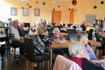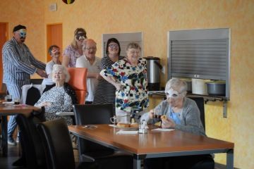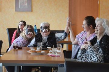 I u nás na Terasách proběhla oslava Masopustu . Dopoledne klientky spolu s aktivizačními pracovnicemi usmažily výborné koblihy plněné domácí broskvovou marmeládou . Ty si následně odpoledne senioři snědli při kávě a zábavě. Přišel nám opět zahrát šikovný Aleš Rusňák se svojí heligonkou. Zatančili jsme si, zazpívali jsme si, zkrátka jsme si užili příjemné odpoledne.