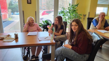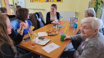 Na Terasách bylo včera odpoledne mimořádně živo. Opět jsme rádi uvítali studenty z Gymnázium Františka Křižíka a základní škola, kteří přišli, aby načerpali další inspiraci a moudrost od našich klientů. Nebylo to jen obyčejné povídání ... Studenti se se zájmem vyptávali na životní osudy, důležité zkušenosti i veselé historky a všechny vzpomínky si pečlivě zapisovali. Zaznamenané příběhy vyjdou v knize, kterou nám autoři přijdou osobně představit. Na výsledek se moc těšíme ! Jako překvapení připravily naše dámy dětem sladké překvapení v podobě dortu a nealko míchaných nápojů. Děkujeme studentům za jejich nadšení a našim klientům za otevřenost a ochotu ke sdílení drahocenných vzpomínek.